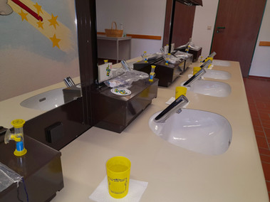 Zuerst sind wir mit dem Bus nach Gummersbach gefahren, das hat 30 Minuten gedauert. Dann haben wir Namen-Schilder bekommen. Es gab 3 Stationen und 3 Gruppen mit 3 Farben. Bei der ersten Station waren wir in einer Zahnarztpraxis und haben dort etwas über Karies gelernt zum Beispiel wie er entsteht.